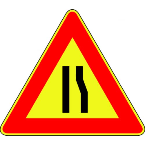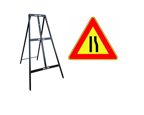 CARTELLO IN LAMIERA SCATOLATA TRIANGOLO lato 90cm - strettoia asimmetrica a destra - SEGNALE CATARIFRAGENTE CON CAVALLETTO (CARTELLO + CAVALLETTO)