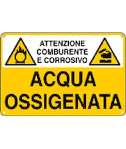 NEW CARTELLO SEGNALETICO - acqua ossigenata attenzione comburente e corrosivo - Adesivo Extra Resistente, Pannello in Forex, Pannello In Alluminio (PANNELLO IN ALLUMINIO 20X31 CM)
