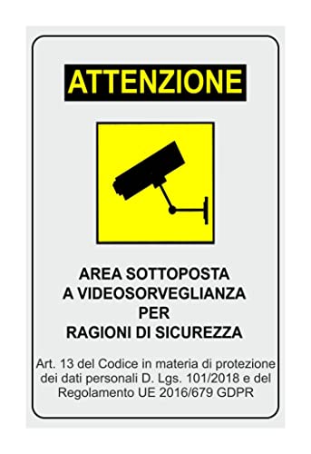 NEW CARTELLO SEGNALETICO - AGGIORNATO GDPR - AREA SOTTOPOSTA A VIDEOSORVEGLIANZA - Adesivo Extra Resistente, Pannello in Forex, Pannello In Alluminio (PANNELLO IN FOREX 20X31)
