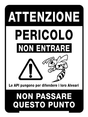 NEW CARTELLO SEGNALETICO - Attenzione pericolo non entrare le api pungono per difendere i loro alveari non passare questo punto (ADESIVO 20X31 CM)