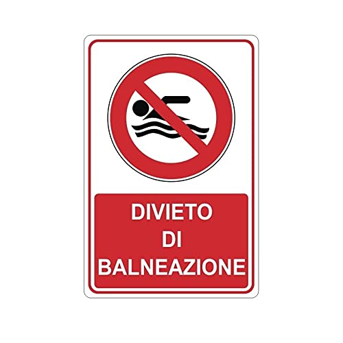 CARTELLO SEGNALETICO - Divieto di balneazione mod. 2 - Con Adesivo in Vinile e Pannello in Forex (Pannello 5mm Stampato)