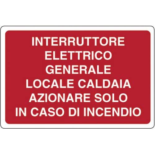 NEW CARTELLO SEGNALETICO - Interruttore generale locale caldaia azionare solo in caso di incendio - Adesivo Extra Resistente, Pannello in Forex, Pannello In Alluminio (PANNELLO IN ALLUMINIO 20X31 CM)