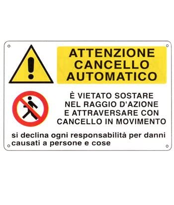 NEW CARTELLO SEGNALETICO - MULTISIMBOLO attenzione cancello automatico. è vietato - Adesivo Extra Resistente, Pannello in Forex, Pannello In Alluminio (PANNELLO IN ALLUMINIO 20X31 CM)