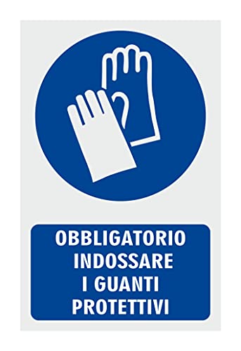 CARTELLO SEGNALETICO - OBBLIGATORIO INDOSSARE I GUANTI PROTETTIVI - Con Adesivo in Vinile e Pannello in Forex (Pannello 5mm Stampato)