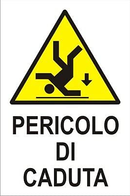 CARTELLO SEGNALETICO - PERICOLO DI CADUTA - Con Adesivo in Vinile e Pannello in Forex (Pannello 5mm Stampato)