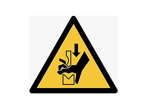 CARTELLO SEGNALETICO TRIANGOLO ISO 7010 - Schiacciamento della mano nell'ingranaggio di una pressa piegatrice - Adesivo Extra Resistente, Pannello in Forex, Pannello In Alluminio (ADESIVO 2,5 CM)