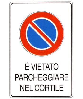 NEW CARTELLO SEGNALETICO - è vietato parcheggiare nel cortile - Adesivo Extra Resistente, Pannello in Forex, Pannello In Alluminio (PANNELLO IN ALLUMINIO 20X31 CM)