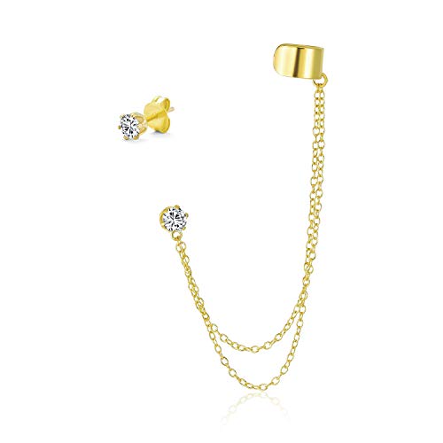 Cartilagine Geometrica Plain Band Con Catena Ear Warp Cuff Cz Stud Ear Lobe Earring Per Le Donne Adolescenti Uomini Placcato Oro Giallo .925 Sterling Silver