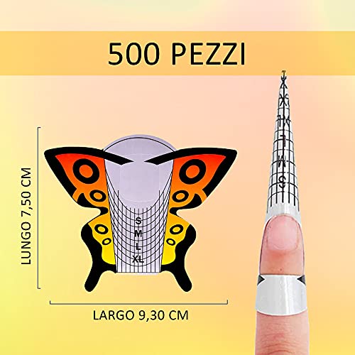 Cartine Farfalla Arancione 500 Pezzi Per Allungamento Su Unghie Naturali, Nail Form Dotate Di Millimetraggio Per Gel E Ricostruzione Manicure