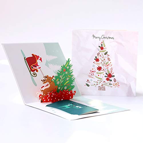Biglietto Auguri Pop Up: 5.91*5.91 pollici, 100% di materiale riciclato, tutti i biglietti di auguri per le vacanze sono dotati di buste