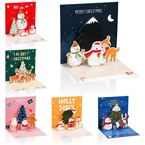 Cartoline di Natale in 3D con Buste e Adesivi 6 Divertenti Biglietti Natalizi Pop-Up con Babbo Natale Pupazzo di Neve Renna Biglietto di Auguri di Buon Natale per Bambini Amici Parenti
