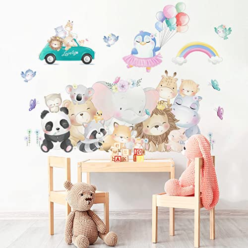 2 Pcs Cartone Animali Adesivi Murali, Palloncino Nuvole Arcobaleno Adesivi Murali, Diy Rimovibili Foresta Animali Adesivo Murale, Per Cameretta Nursery Baby Wall Decor