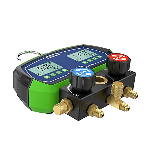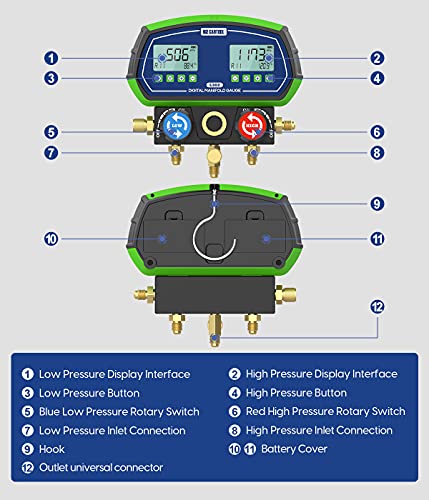 【SET DI MANIFOLD DIGITALE】Il kit del manometro del refrigerante L302 determina la pressione laterale bassa e alta, il test in tempo reale della pressione ha ottenuto la temperatura di saturazione corrispondente che può aiutarti più conveniente per l'installazione o la manutenzione del sistema di refrigerazione