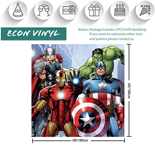 Cartoon Hero Sfondo Supereroe Ragazzo Bambino Compleanno Foto Sfondo Baby Shower Forniture Torta Decorazione Tavolo Photo Booth Studio Puntelli 6x6FT, Multicolore, 6x6FT(180x180cm) (YXY- cy289)