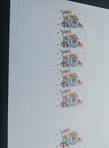 Confezione 100 Pz Bigliettini Bomboniera Nascita / Battesimo Maschili Cartoncino Bianco Stampato in quadricromia impaginati in Formato A4