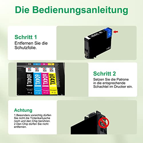 Per Cartucce 604 XL Epson Compatibili Contenuto Della Confezione: sostituzione delle cartucce Epson 604XL (1 x Cartucce nere 604XL, 1 x Ciano 604XL, 1 x Magenta 604XL, 1 x Giallo 604XL).