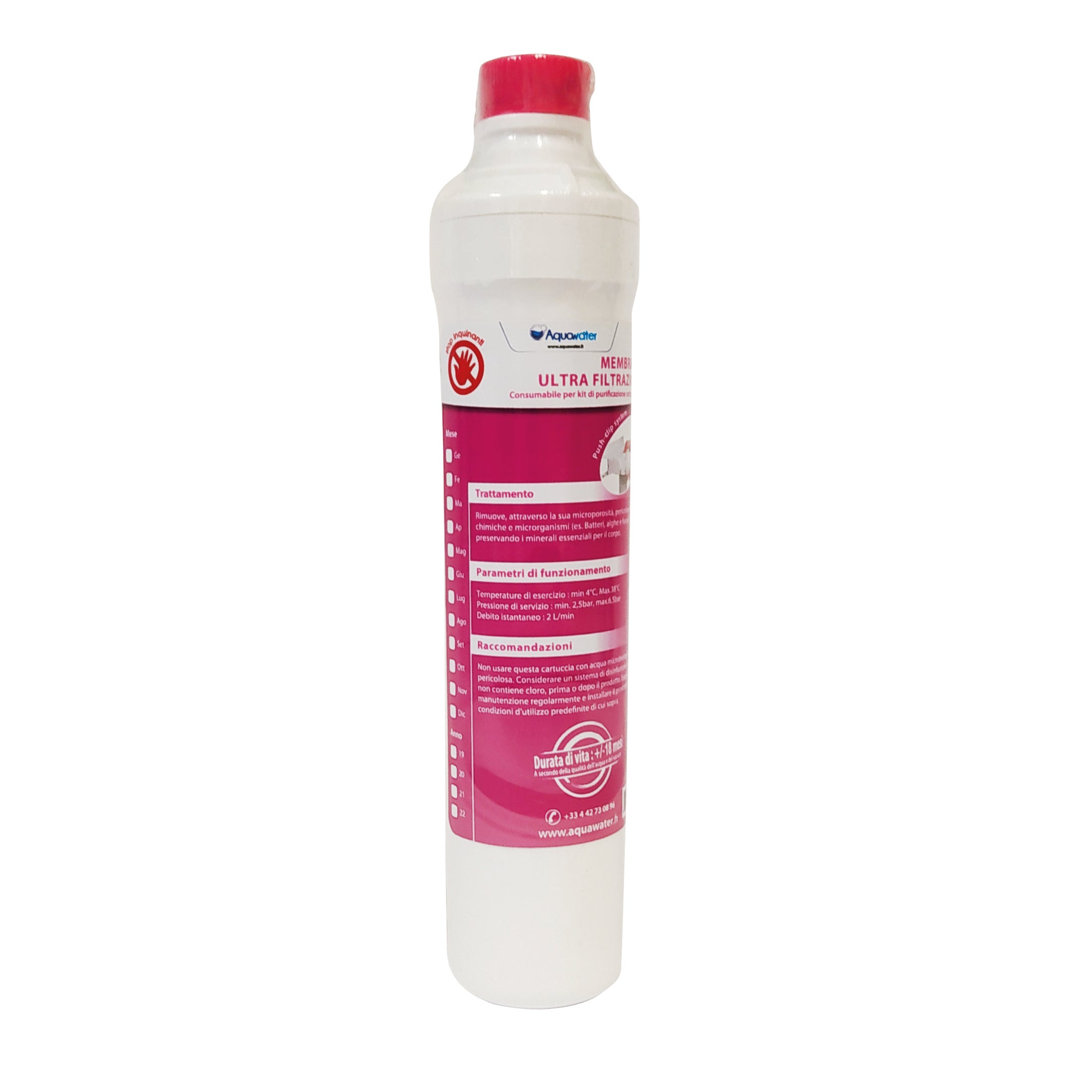 Membrana ultra filtrazione per kit Direct Pur. anti batterico per acqua da bere. Elimina le micro molecole chimiche pericolose e gli micro organismi come batteri, alghe,funghi.... Facile da sostituire con il Push&Clip system. Conserva i minerali essenziali al nostro organismo