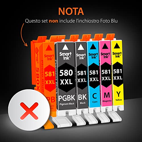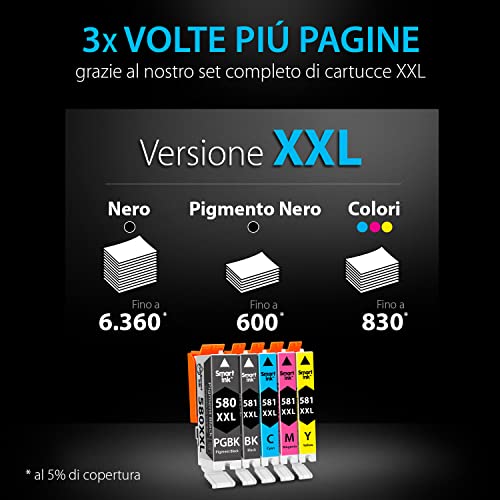 Cartuccia d'inchiostro Smart Ink Compatibile In sostituzione di Canon PGI 580XXL 580 CLI 581XXL 581 (PGBK & BK/C/M/Y 5 Combo Pack) per la ricarica delle stampanti Pixma TS6150 TS6250 TS6251 TR7550
