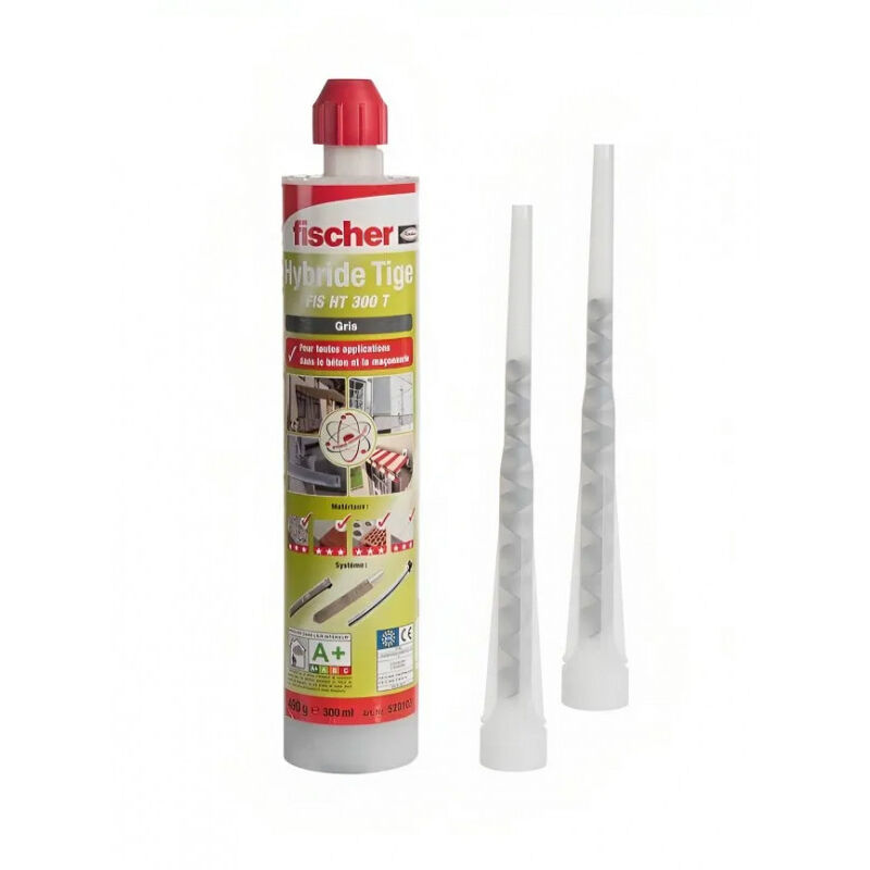 Cartuccia di resina FIS HT 300T, tono grigio (sigillante chimico) FISCHER, riferimento 520103. FIS HT 300 di Fischer è una malta da iniezione per il fissaggio di barre filettate. Può essere usato in calcestruzzo non fessurato da C20/25 a C50/60, in mattoni perforati verticalmente, in mattoni forati o solidi di sabbia e calce e in mattoni pieni. Consiste in un indurente e in una resina ibrida senza stirene, mescolati dalla pressione esercitata sul fondo della cartuccia dal pistone. - Adatto a vari media: Approvato per: Calcestruzzo da C20/25 a C50/60, fessurato e non fessurato Mattone perforato verticalmente Mattone forato di sabbia e calce Solido mattone di sabbia e calce Mattone pieno Mattone - Prodotto ad alta resistenza - Tempo di asciugatura ridotto