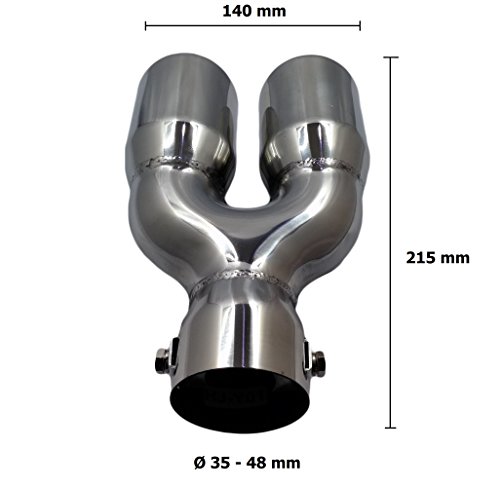 CARTUNER Terminale di scarico rotondo, 2 x 65 mm, in acciaio inox, effetto tubo di scarico sportivo, assorbitore 35-60 mm