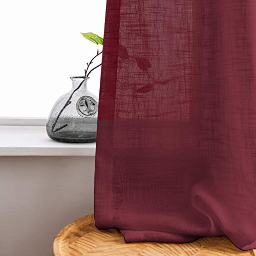 Carvapet Tende Soggiorno Rosso Tende Trasparenti Occhielli Camera da Letto con 2 Fermatenda, 140 x 225cm