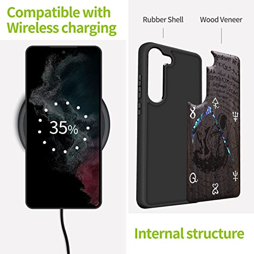 Carveit Custodia per Galaxy S23 Plus Cover [Incisione in legno e intarsio di cozze] Capolavoro del design del legno Case Compatibile con Samsung S23 Plus Custodia Lusso (Legno nero-Triste Mietitore)