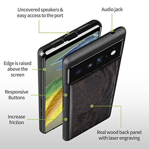 Carveit Custodia in per Google Pixel 6 Cover [Retro in Legno e Telaio in TPU] Slim Fit Anti-Shock in Silicone Protezione Compatibile con Pixel 6 Wood Case (Legno Nero-La Grande Onda)