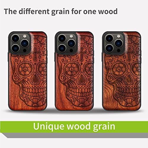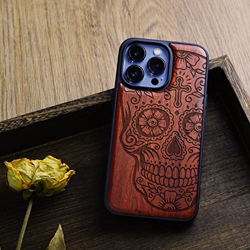 Carveit Custodia In Legno Per iPhone 13 Pro Cover avec magnetico Custodia [Palissandro Legno] [Paraurti Robusto TPU] Ricarica Compatibile con 13 Pro MagSafe Custodia (Teschio di zucchero)