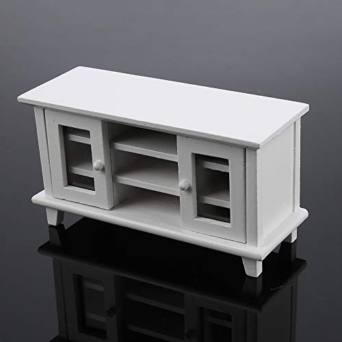 1:12 Casa Bambole Legno Mobile TV Miniatura Soggiorno Mobilia Case Bambola Decorazione Ornamenti Accessori con Doppio Aperto Porte per Bambini Educativo Fingere Giocare Giocattoli Regalo (White)