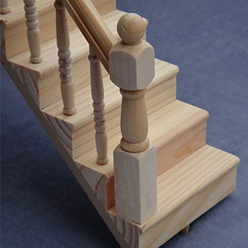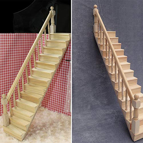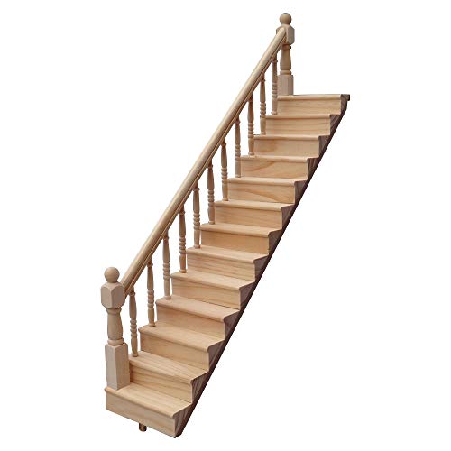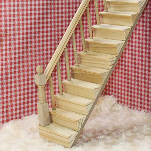 Scale per case delle bambole Dimensioni: 28 cm di lunghezza, 6,7 cm di larghezza, altezza del gradino: 1,8 cm, lunghezza della scalinata 6,8 cm, larghezza 1,8 cm, corrimano: 7 cm di altezza, 45 gradi di pendenza
