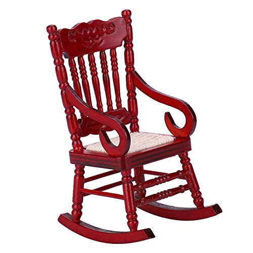 Casa Delle Bambole Sedia a Dondolo in Legno 1:12 Mobili in Miniatura Casa Delle Bambole Soggiorno Decorazione in Legno Mini Regalo per Bambini (Mogano)