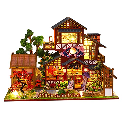Casa delle bambole in stile giapponese in miniatura con mobili, kit per casa delle bambole in legno fai da te con musica, stanza creativa in scala 1:24 per regalo di compleanno