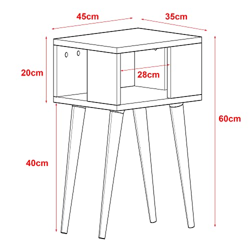 En.casa - Comodino (AxLxP) 60 x 45 x 35 cm Tavolino Basso da Divano con Scomparto Semiaperto e 4 Gambe in Legno - Bianco/Effetto Rovere