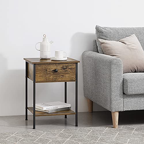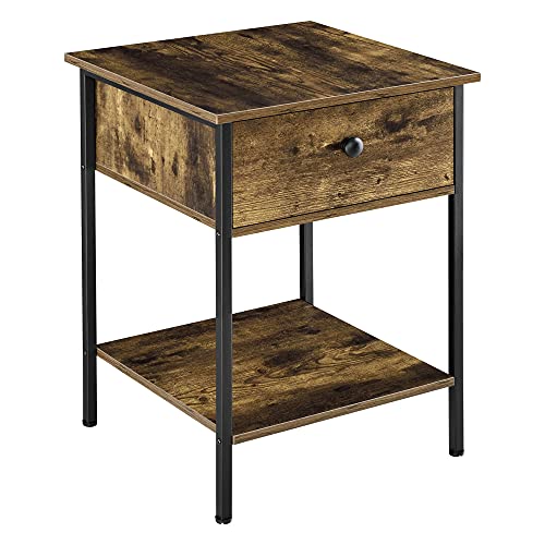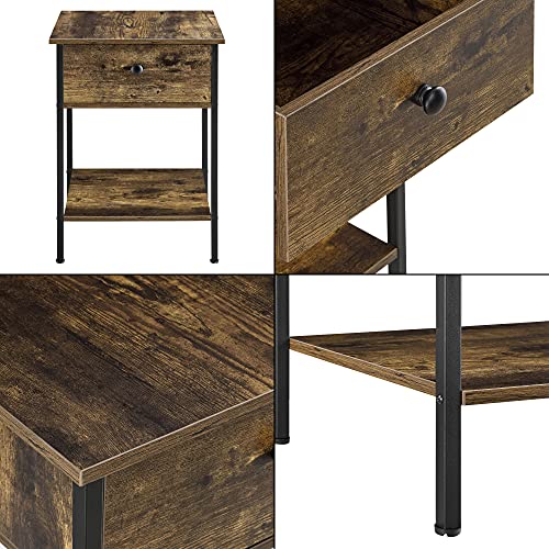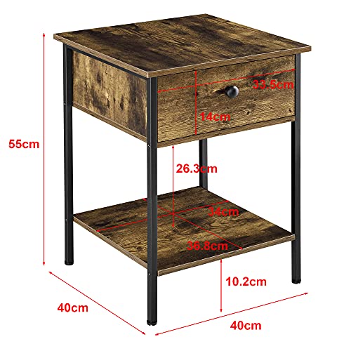 En.casa - Comodino con Cassetto e Ripiano Portaoggetti (AxLaxP): 55 x 40 x 40 cm Tavolino da Divano su Telaio in Metallo Tavolo Basso da Salotto/Soggiorno/Camera da Letto - Effetto Legno Scuro