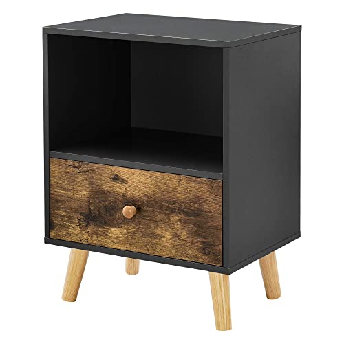 En.casa - Comodino da Notte con Cassetto e Scomparto/Ripiano 54 x 40 x 30 cm Tavolino da Divano a 4 Gambe in Legno Tavolo Basso da Salotto/Soggiorno/Camera da Notte - Nero/Legno Scuro
