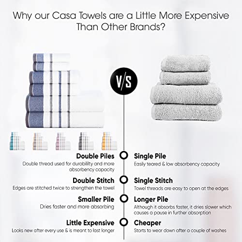 CASA COPENHAGEN White Bay Asciugamano in Cotone Egiziano 600gsm per Hotel Spa Cucina Bagno Set di 6 2 Panni da Bagno 2 Mani 2 Lavaggi - Bianco con Bordo Grigio Scuro Grigio Chiaro