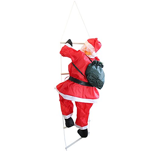 En.casa - Figura di Babbo Natale Arrampicatore su Scala di Corda - Altezza Totale 85 cm - Decorazione Natalizia per Uso Interno/Esterno