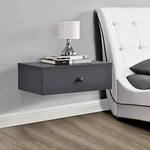 En.casa - Mensola da Parete con Scompartimento Portaoggetti e Una Porta 60 x 24 x 12,6 cm Scaffale a Muro Truciolato Grigio Scuro