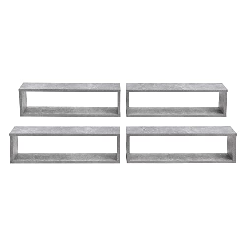 En.casa - Set di 4 Mensole da Parete a Forma Rettangolare 59 x 14,5 x 17 cm 4 Scaffali da Muro con 2 Ripiani Portaoggetti - Effetto Cemento