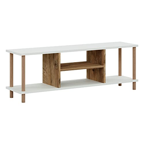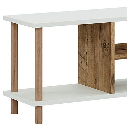 En.casa - Mobile Porta TV (AxLxP) 43 x 120 x 29 cm Consolle Basso con Scomparti Aperti - Gambe di Faggio - Bianco/color Legno