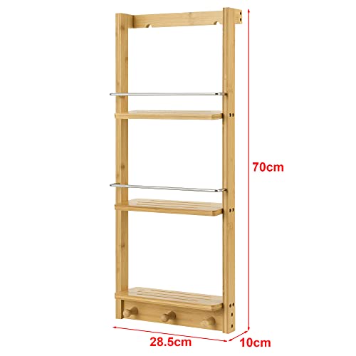 En.casa - Mobiletto a Muro da Bagno (LxPxA) 28 x 10 x 70 cm Scaffale Pensile in bambù a 3 Ripiani e 3 Ganci Portaasciugamano