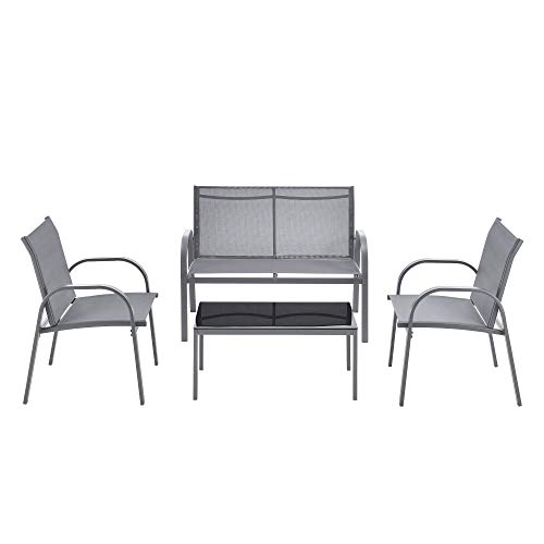 En.casa - Set di Mobili da Giardino Fino a 4 Posti di Seduta Arredo Esterno Set Composto di 1 Divano e 2 Sedie con Braccioli e 1 Tavolino Basso con Piano in Vetro - Grigio Chiaro