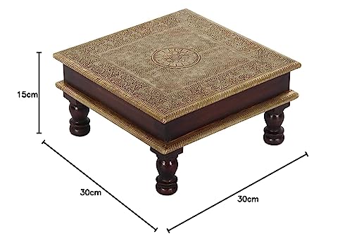 Casa Moro Tavolino in stile orientale Aroon L, in legno con intarsi in ottone, da 30 x 30 x 15 cm (l x L x H), prodotto di artigianato orientale, MA25-70