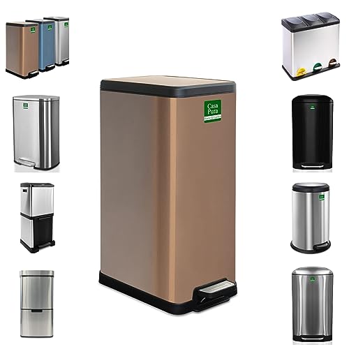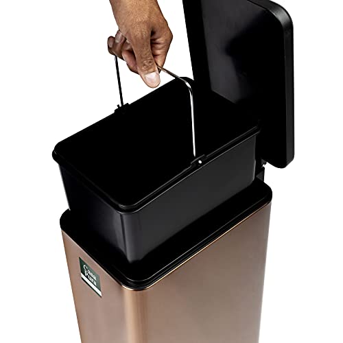 Casa pura Pattumiera fino a 72 litri-Pattumiera in acciaio inox-Sistema di raccolta differenziata per cucina-Pattumiera a pedale-Pattumiera interna con maniglia (bronzo-15 litri), Zack-Bronzo