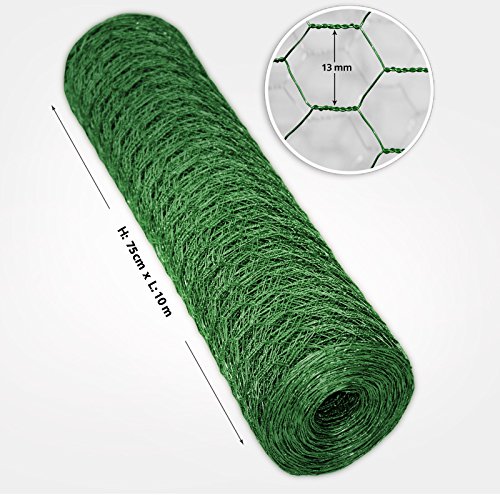 Casa pura Rete Recinzione Metallica - Reti per Recinto Animali, Giardino, a Maglia Esagonale di Due Dimensioni - Rivestita PVC Verde - 13 mm - 75 cm x 10 m