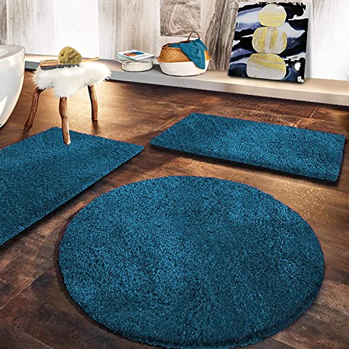 Casa pura Tappeto da bagno a pelo lungo, modello Sky Soft, morbido, effetto shaggy, antiscivolo, lavabile, privo di sostanze nocive, 16 colori in 6 dimensioni (60 x 50 cm, turchese)
