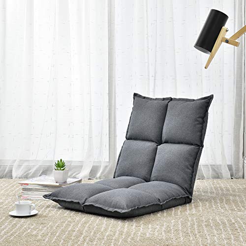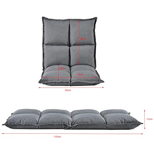En.casa - Sedia da Pavimento con Schienale Regolabile in 5 Posizioni Sedile da Meditazione Poltrona Bassa da Lettura Relax - Color Grigio