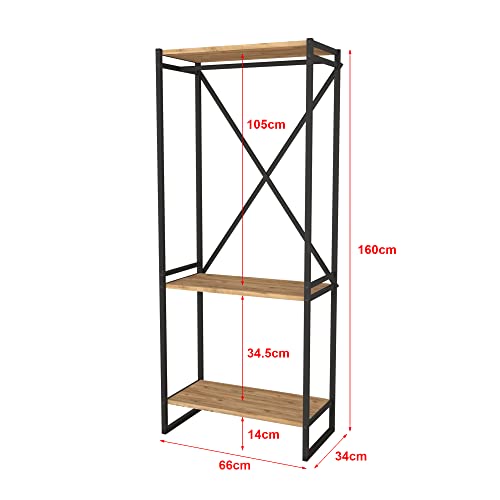 En.casa - Stand Appendiabiti (AxLxP) 160 x 66 x 34 cm Scaffale Porta Abiti con Barra Variabile e 3 Ripiani Organizzatore Guardaroba - Effetto Rovere