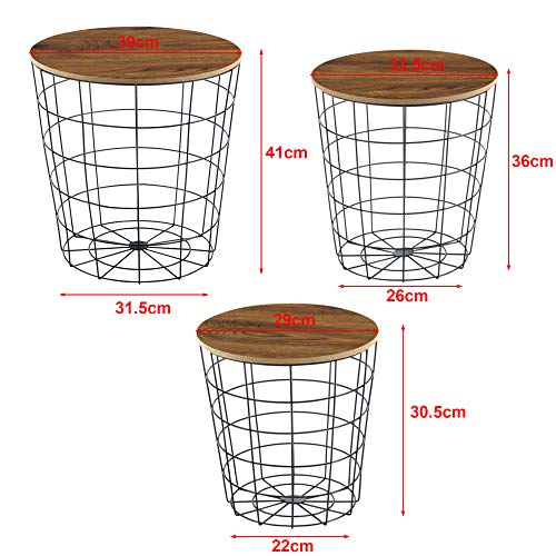 En.casa - Set da 3 Tavolini a Forma di Cestello in 3 Misure Diverse con Piano Rimovibile Portaoggetti Pratico Multiuso - Rovere Antico