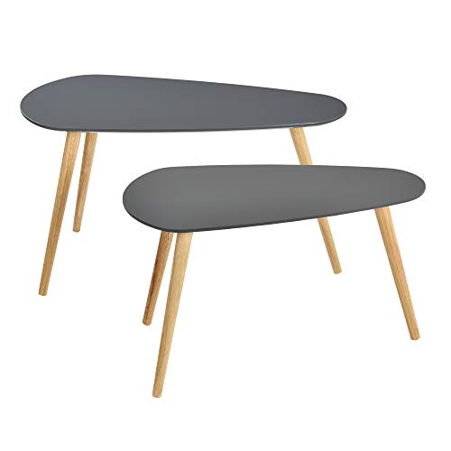 En.casa - Set da 2 Tavolini da Salotto in Altezze Diverse 2 Tavolini Impilabili con Gambe in Legno Tavolini Bassi da caffè di Forma Triangolare con Piano Tavolo Grigio Scuro